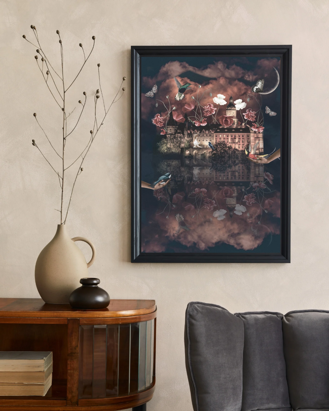 Kolaż na ścianę z motywem pięknego Zamku Książ w Wałbrzychu.