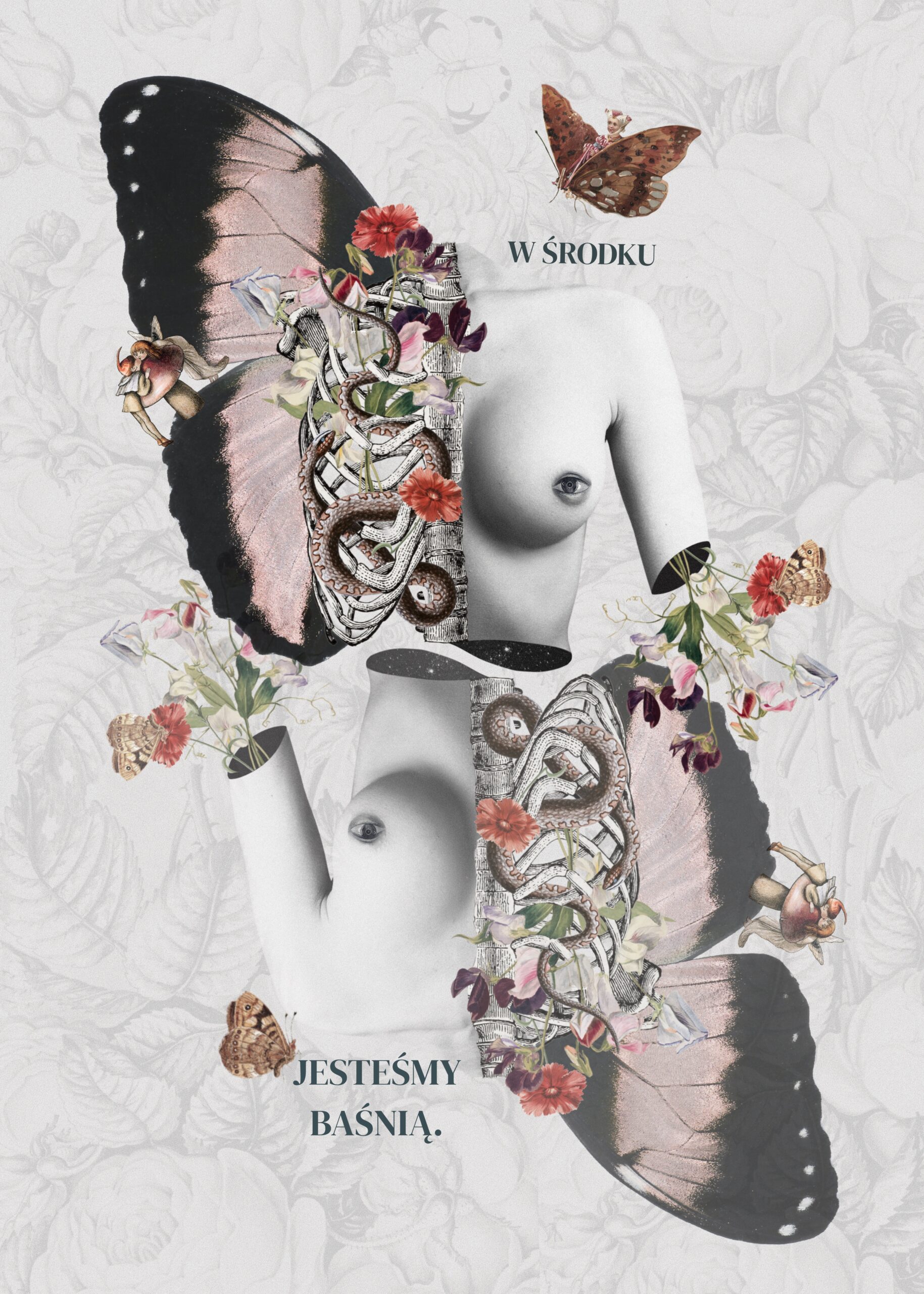 Kolaż na ścianę został wykonany techniką cyfrową.